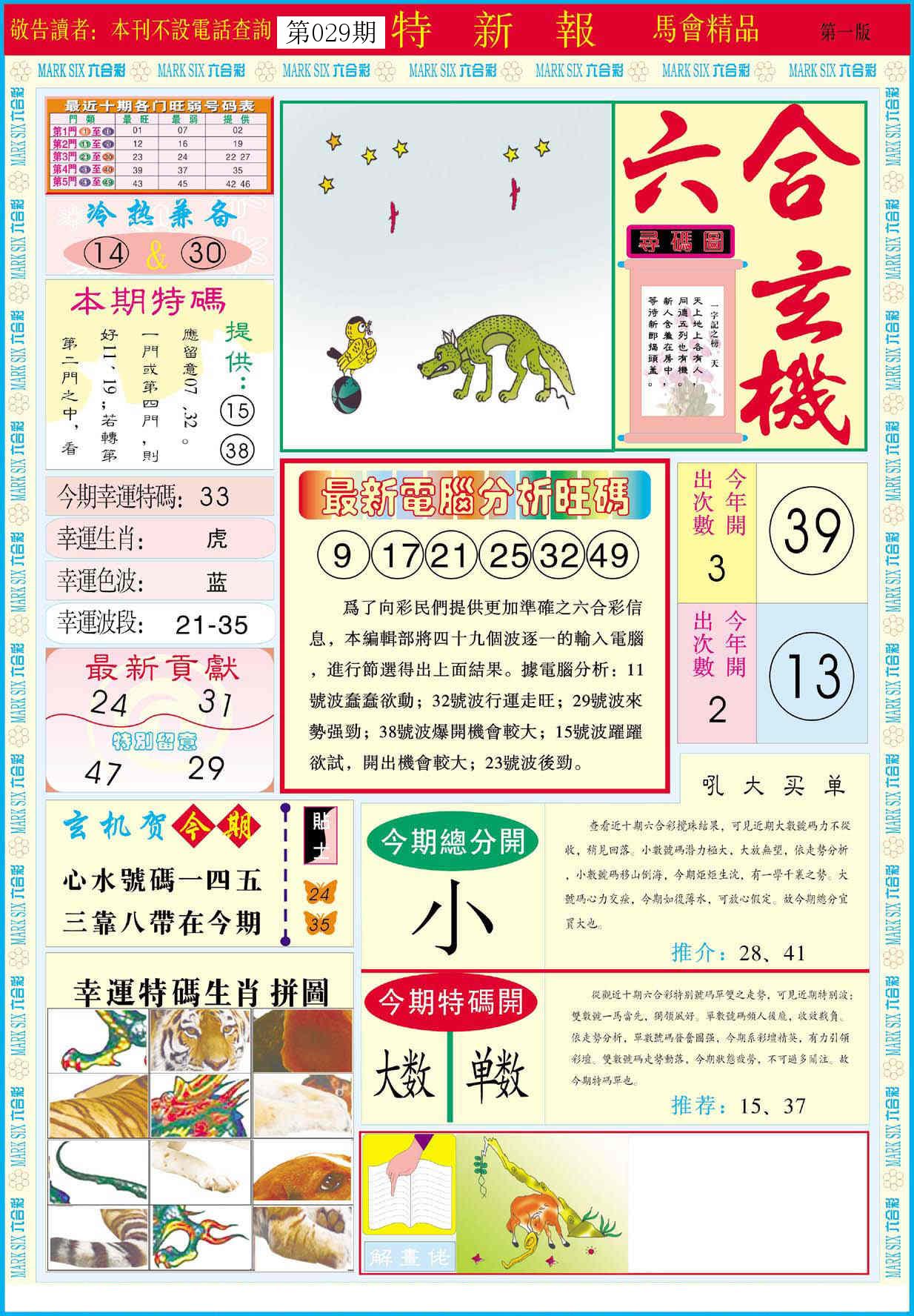 新香港六合彩 第 2026029 期 開獎結果