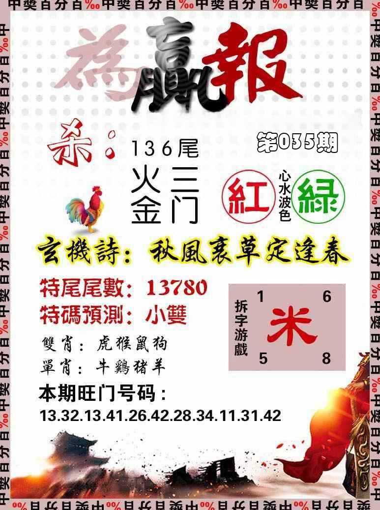 新香港六合彩 第 2026035 期 開獎結果