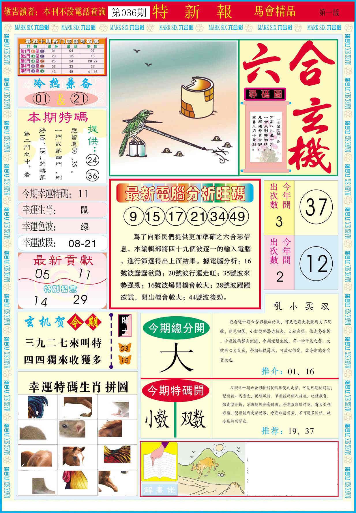 新香港六合彩 第 2026036 期 開獎結果