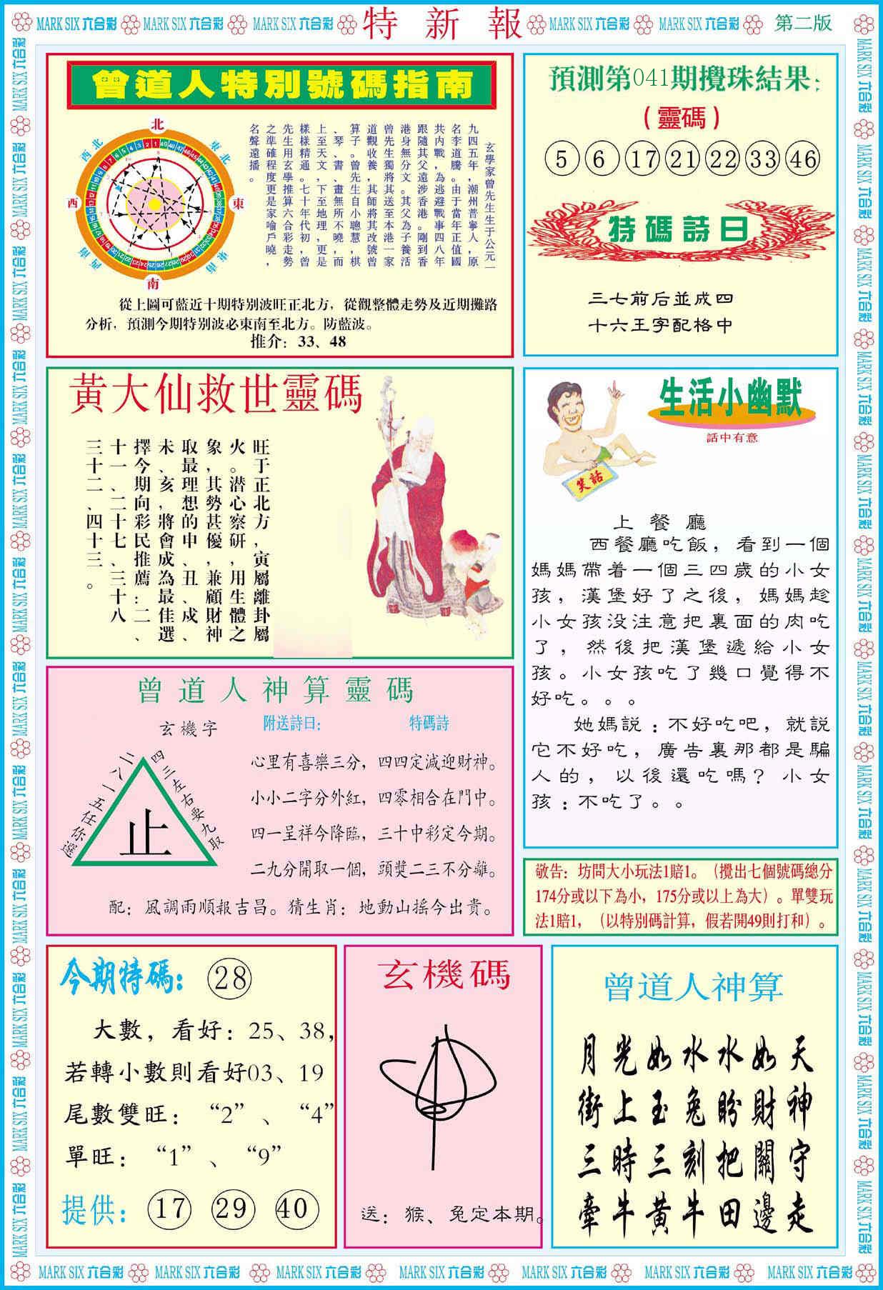 新香港六合彩 第 2026041 期 開獎結果