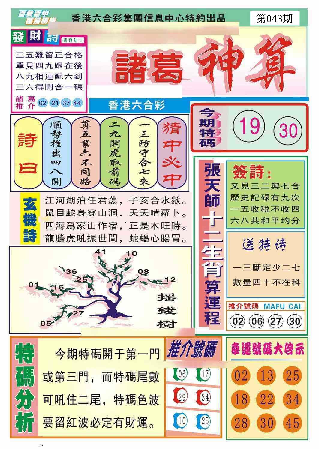 新香港六合彩 第 2026043 期 開獎結果