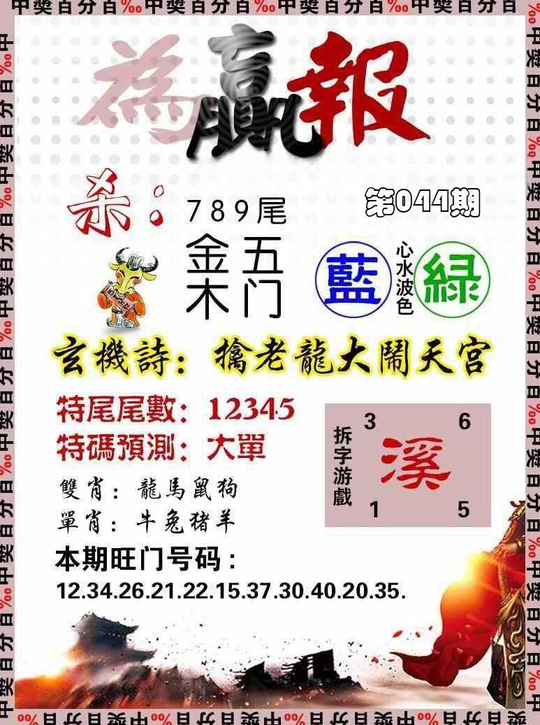 新香港六合彩 第 2026044 期 開獎結果