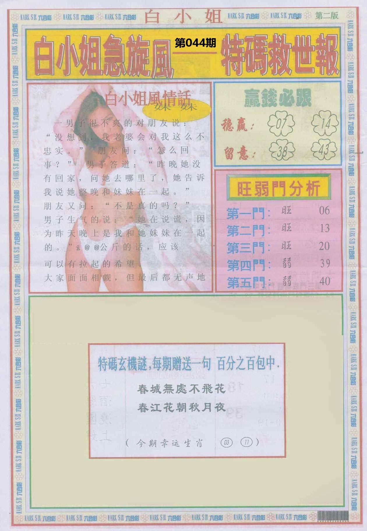 新香港六合彩 第 2026044 期 開獎結果