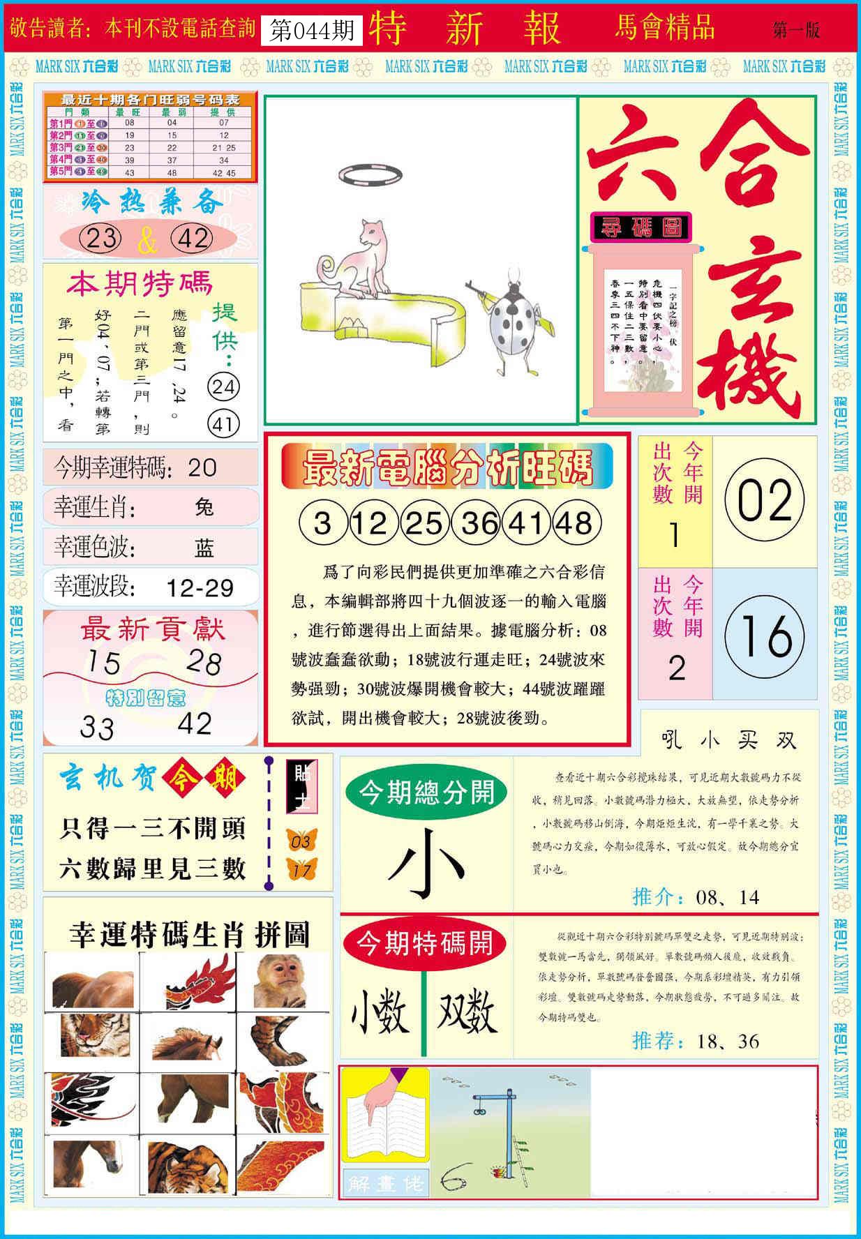 新香港六合彩 第 2026044 期 開獎結果