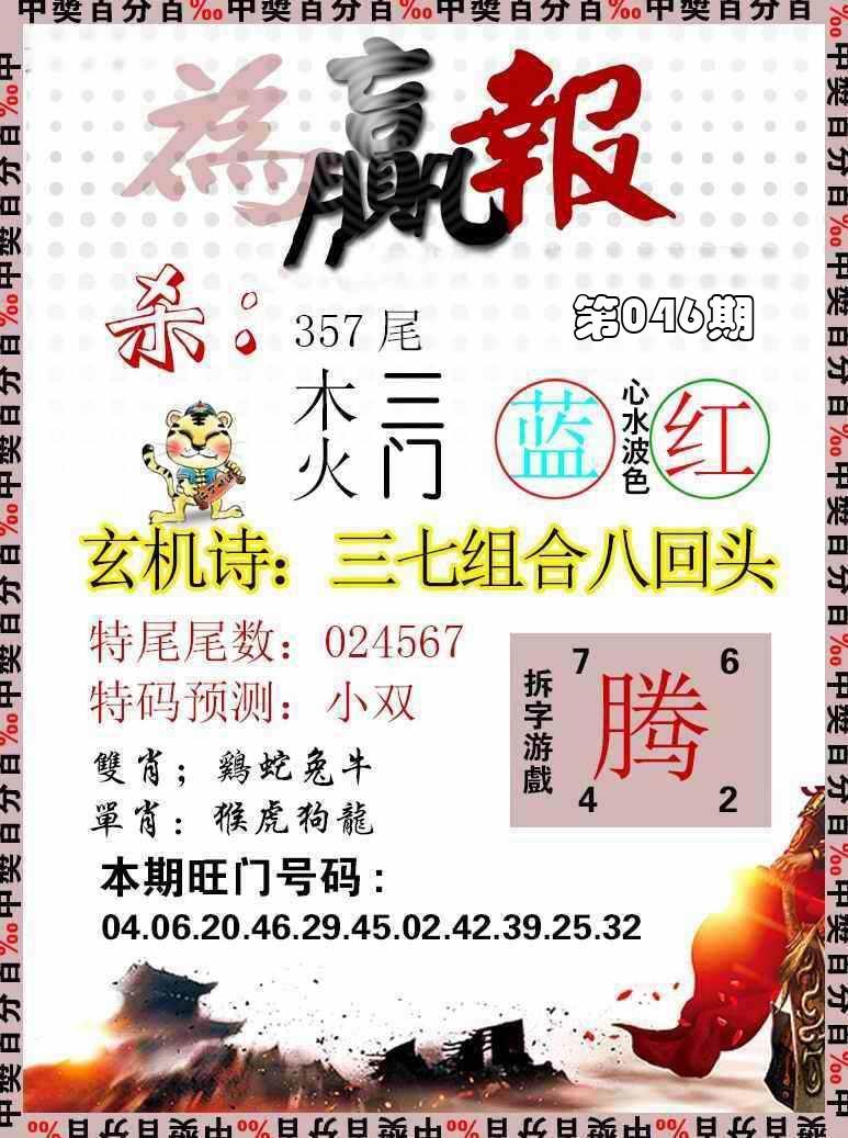 新香港六合彩 第 2026046 期 開獎結果
