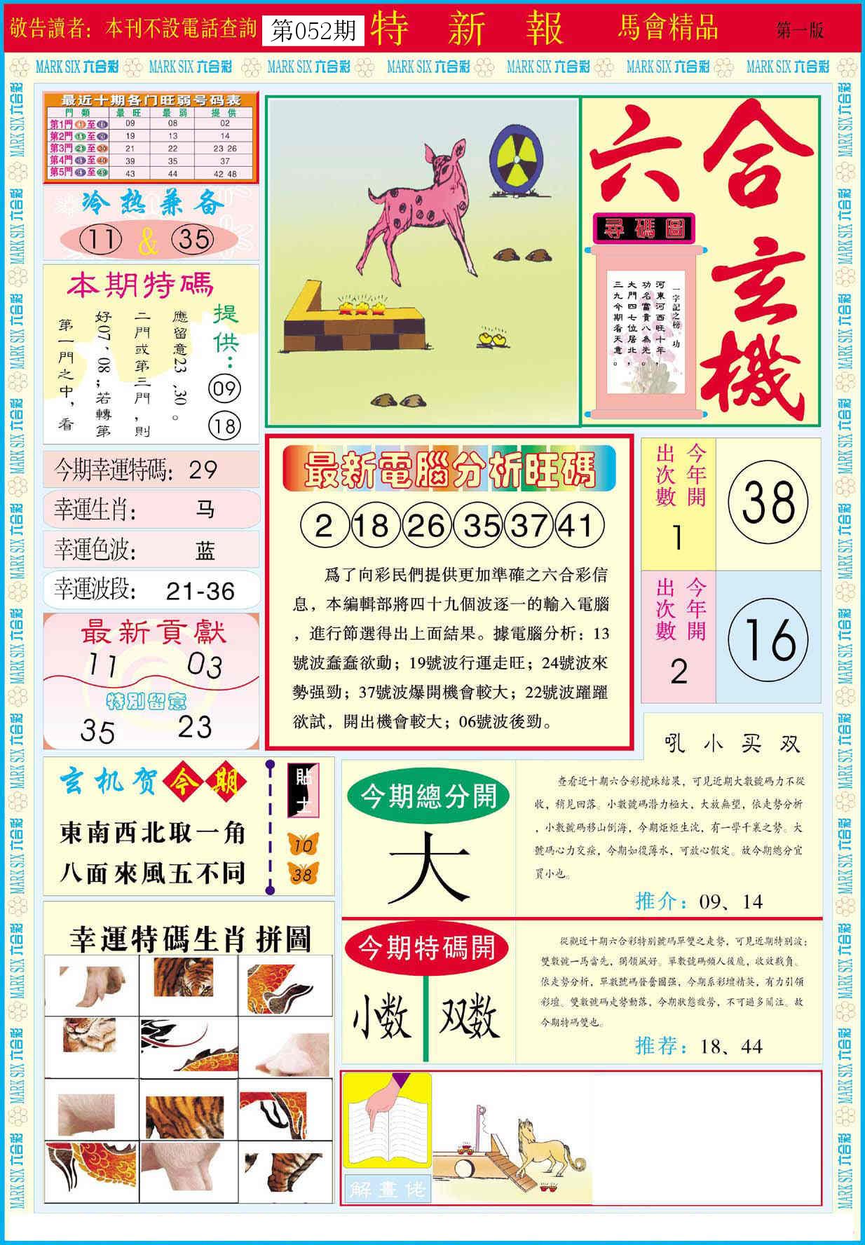 新香港六合彩 第 2026052 期 開獎結果