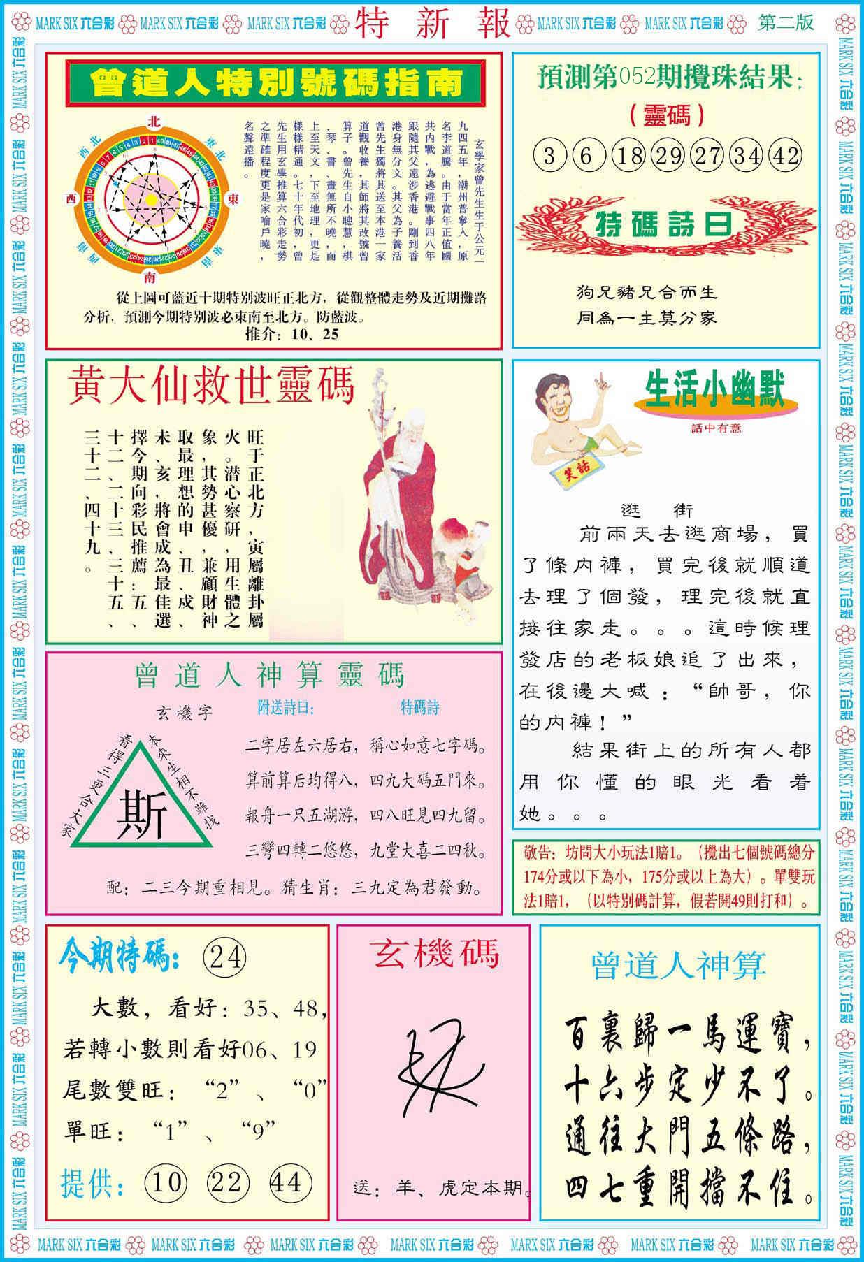 新香港六合彩 第 2026052 期 開獎結果