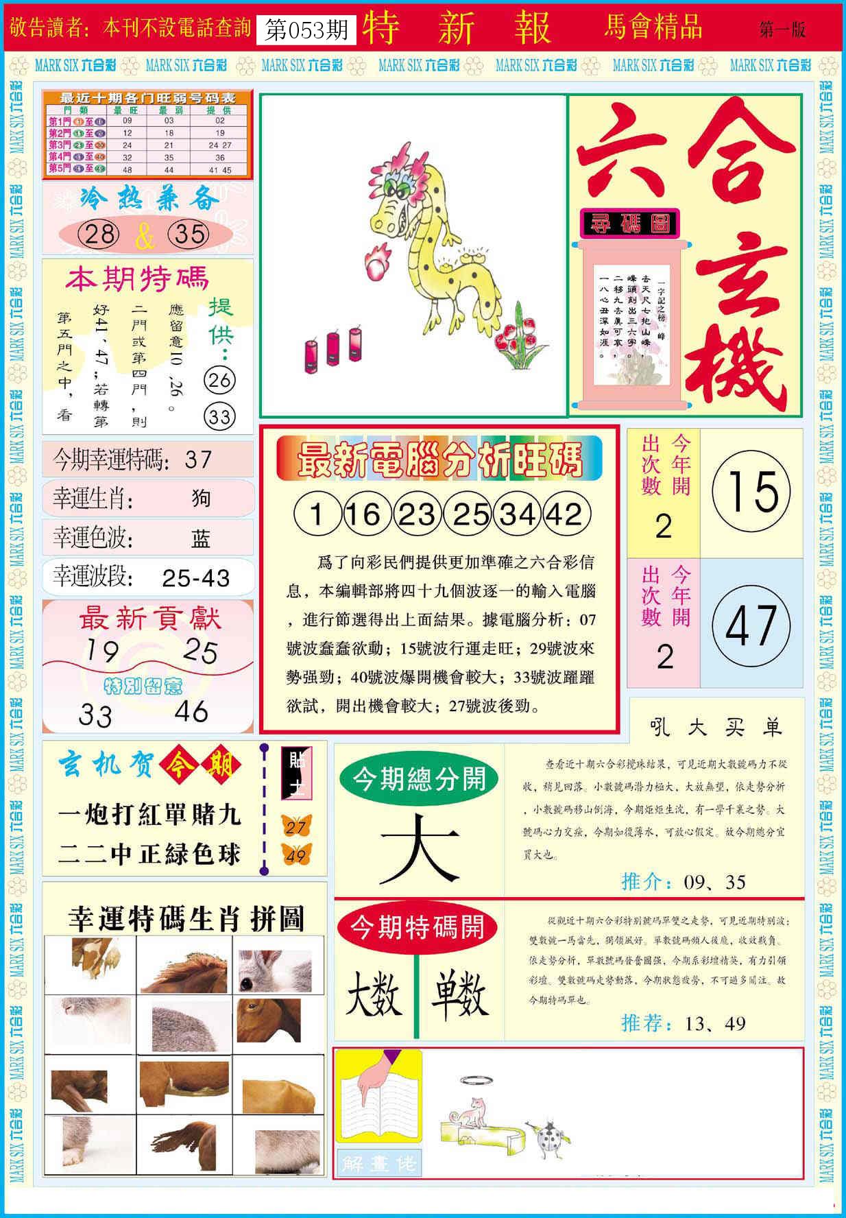 新香港六合彩 第 2026053 期 開獎結果
