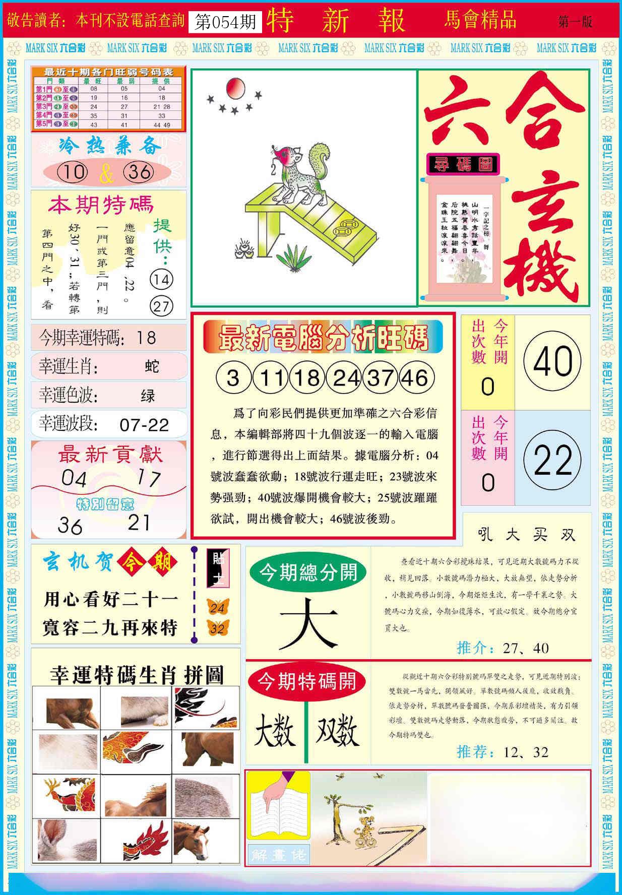 新香港六合彩 第 2026054 期 開獎結果