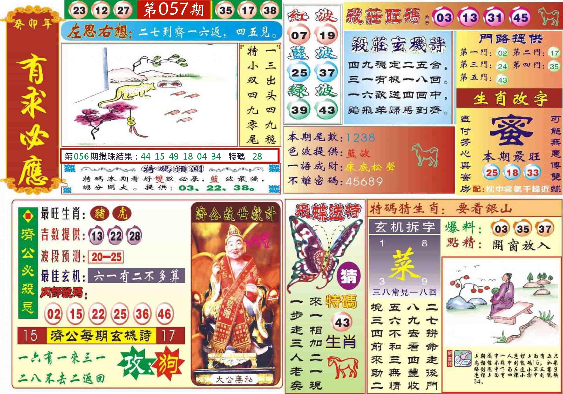 新香港六合彩 第 2026057 期 開獎結果