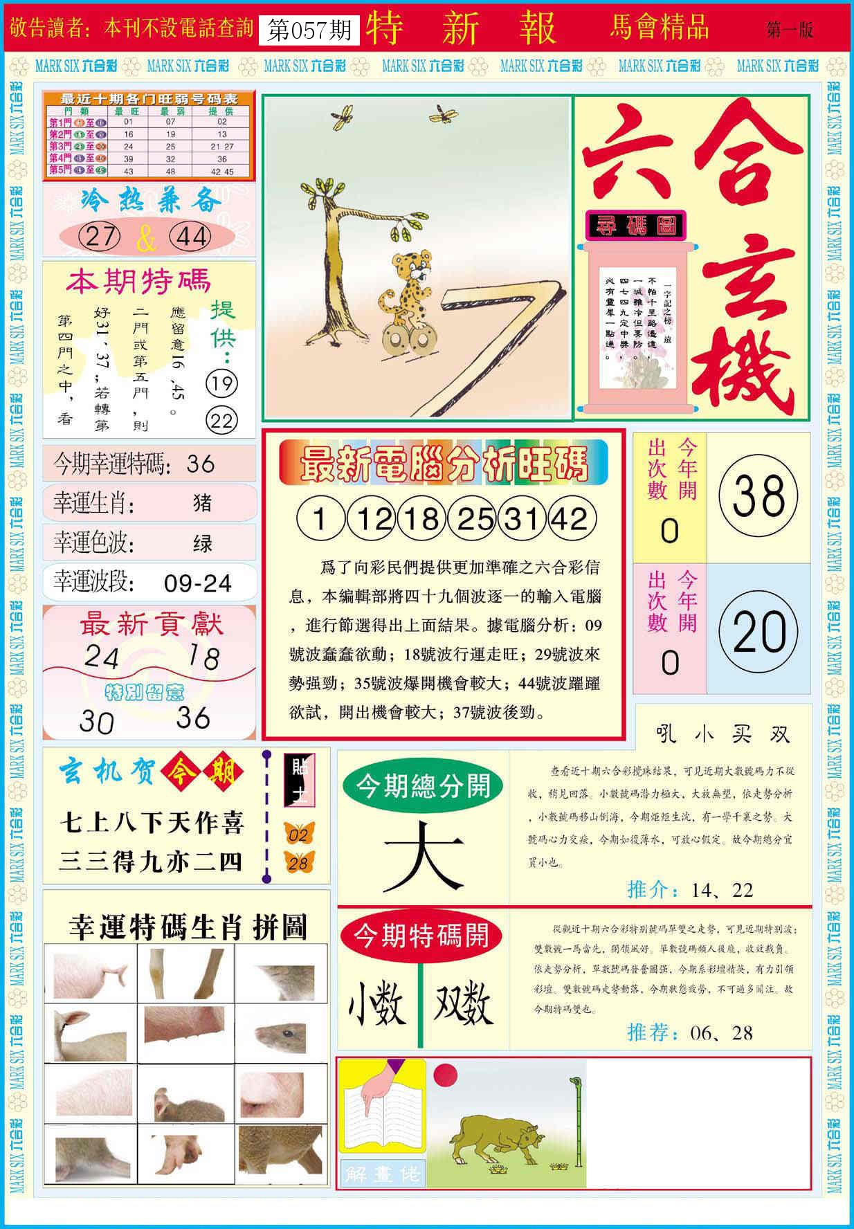 新香港六合彩 第 2026057 期 開獎結果