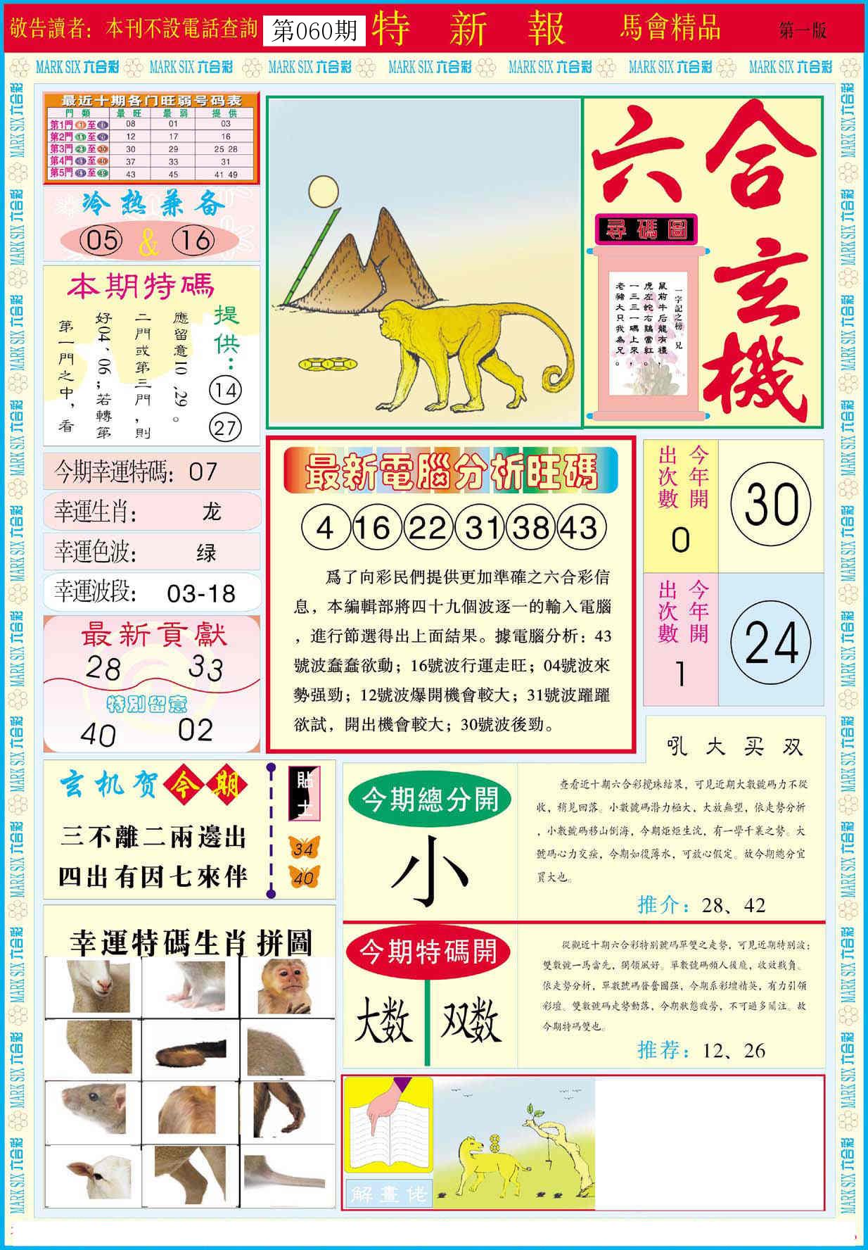 新香港六合彩 第 2026060 期 開獎結果