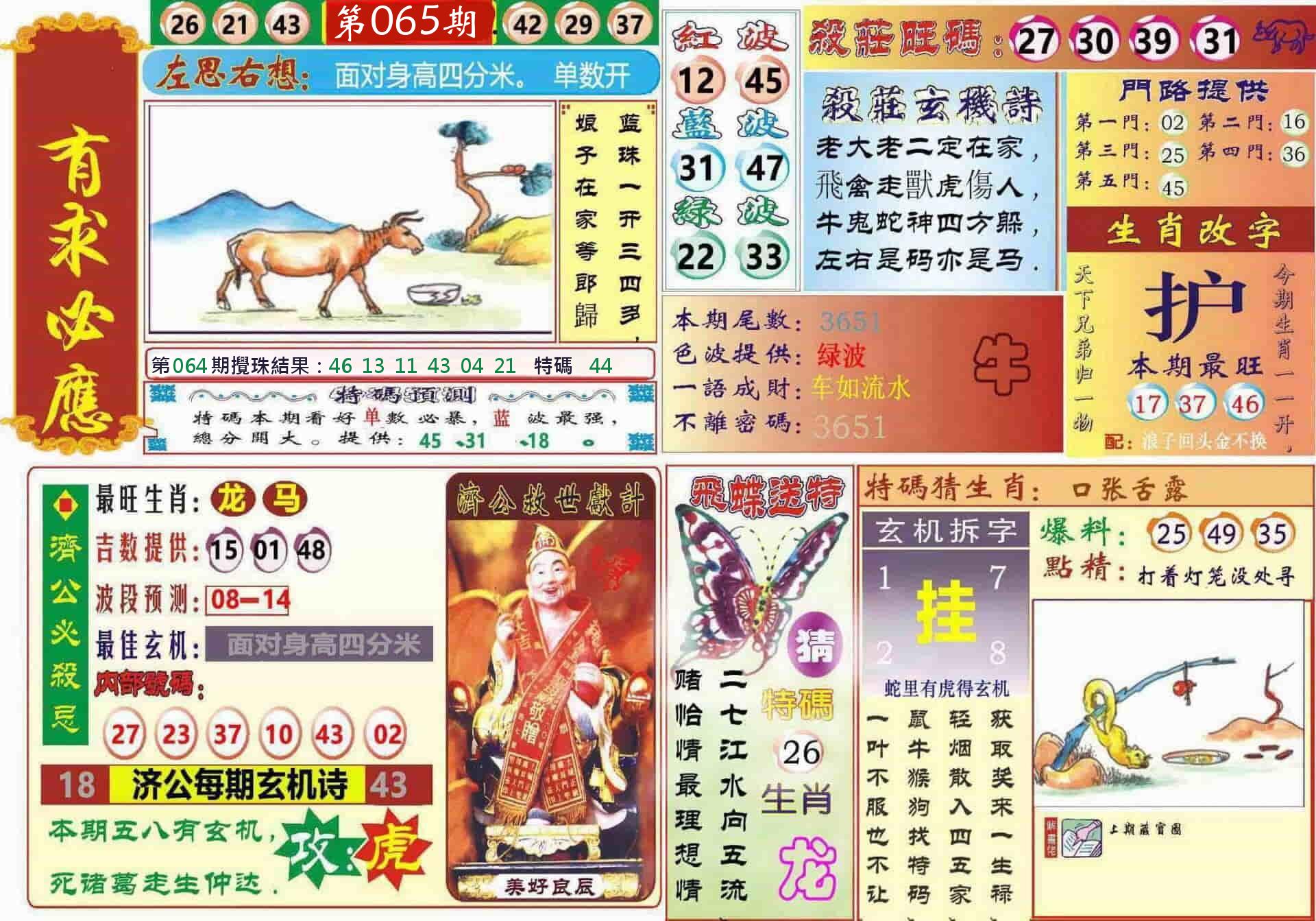 新香港六合彩 第 2026065 期 開獎結果