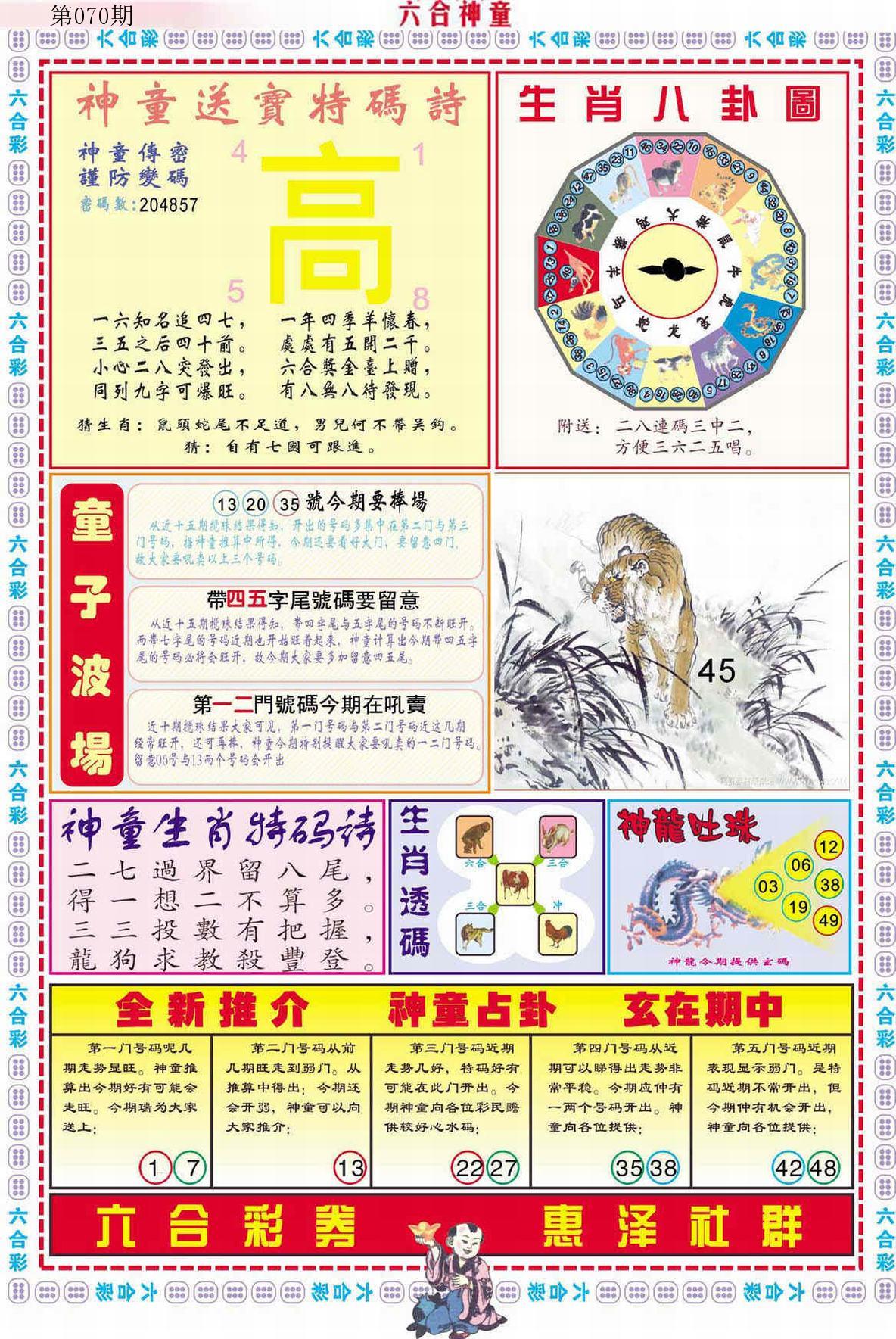 新香港六合彩 第 2026070 期 開獎結果