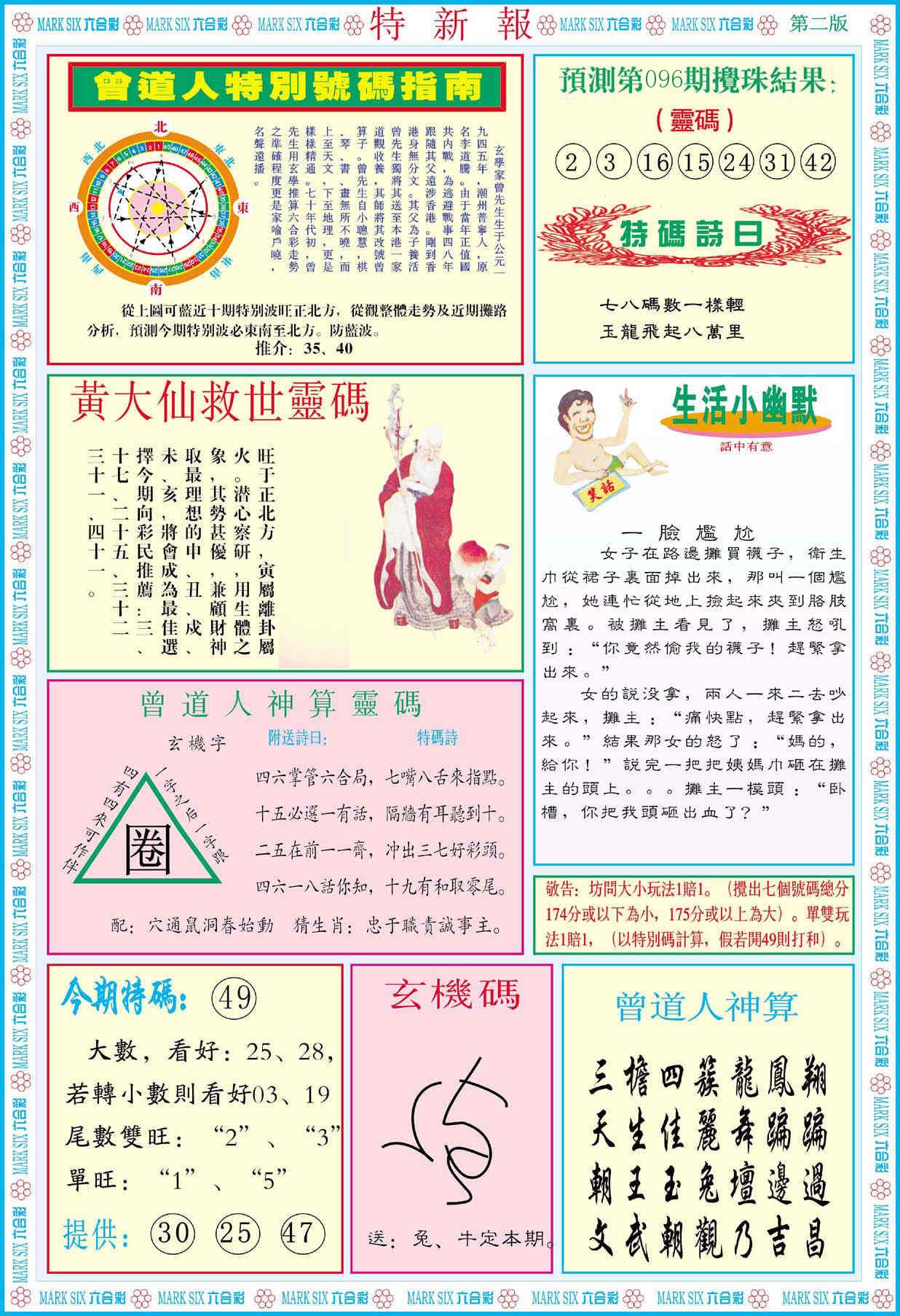 新香港六合彩 第 2026096 期 開獎結果