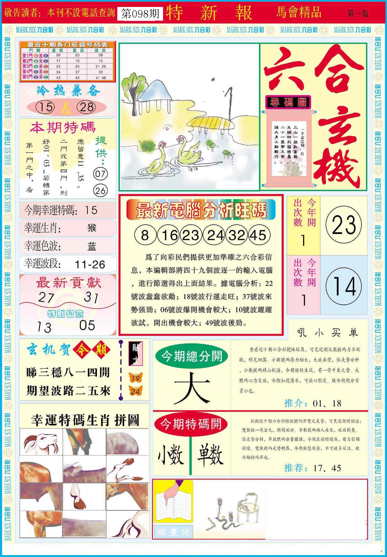 新香港六合彩 第 2026098 期 開獎結果