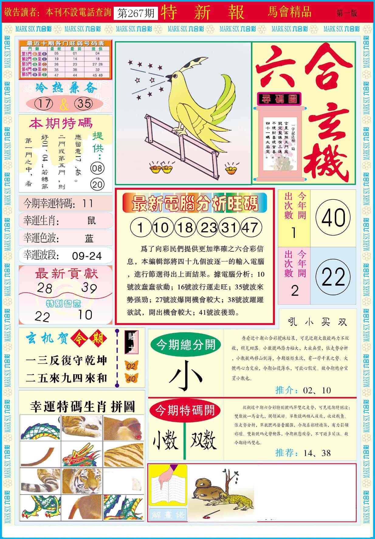 新香港六合彩 第 2025267 期 開獎結果