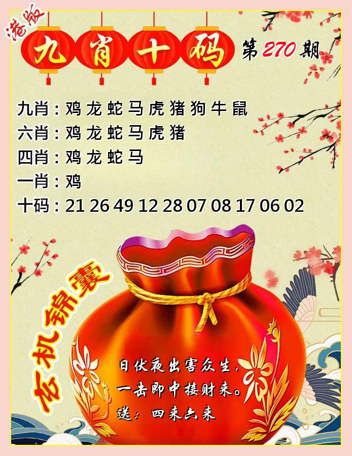 新香港六合彩 第 2025270 期 開獎結果