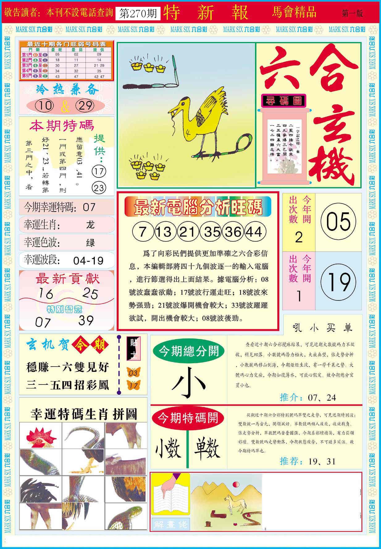 新香港六合彩 第 2025270 期 開獎結果