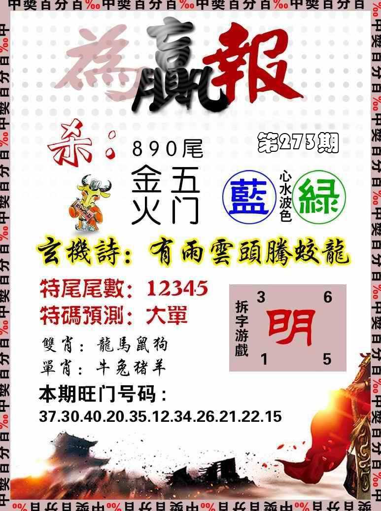 新香港六合彩 第 2025273 期 開獎結果