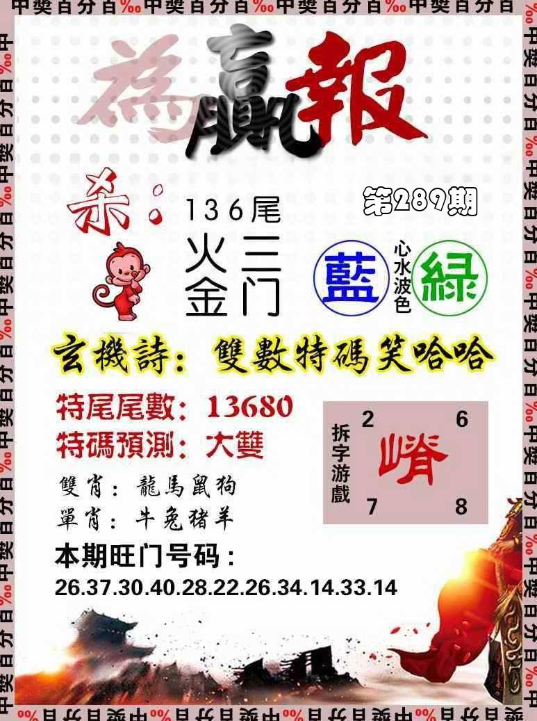 新香港六合彩 第 2025289 期 開獎結果