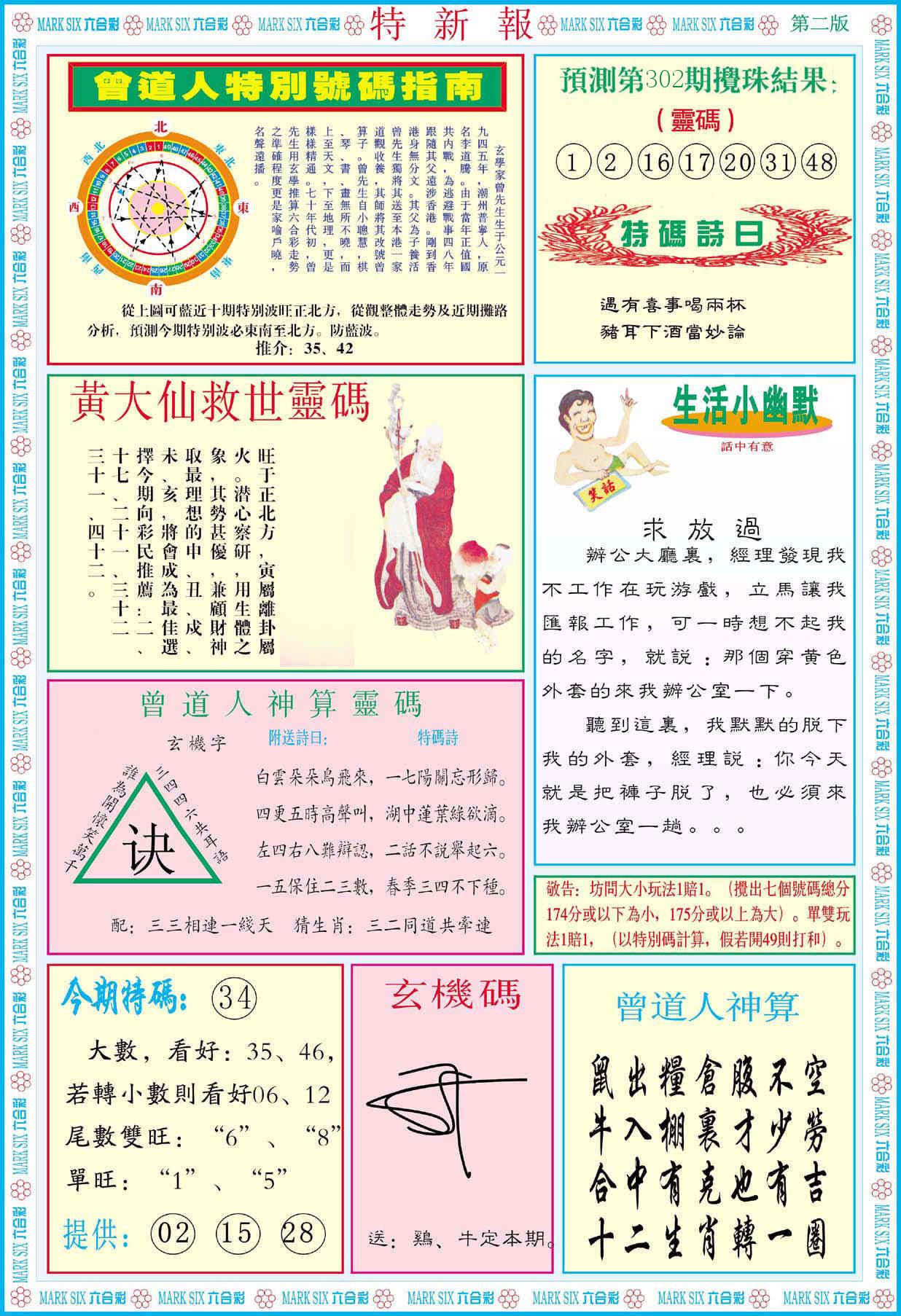 新香港六合彩 第 2025302 期 開獎結果