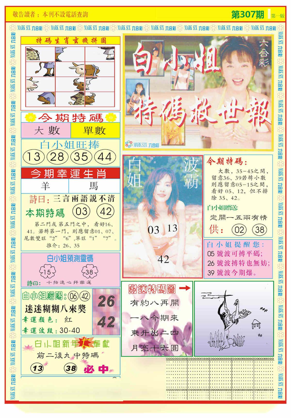 新香港六合彩 第 2025307 期 開獎結果