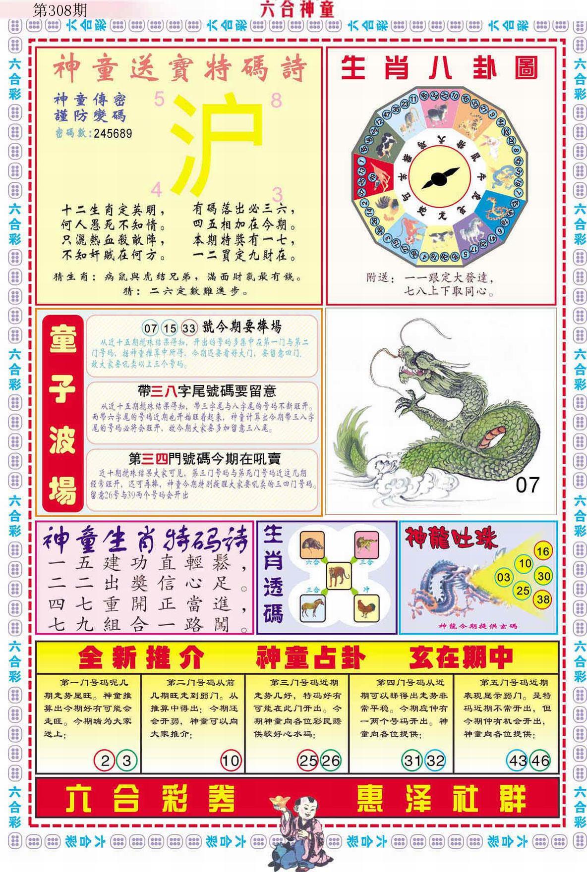 新香港六合彩 第 2025308 期 開獎結果