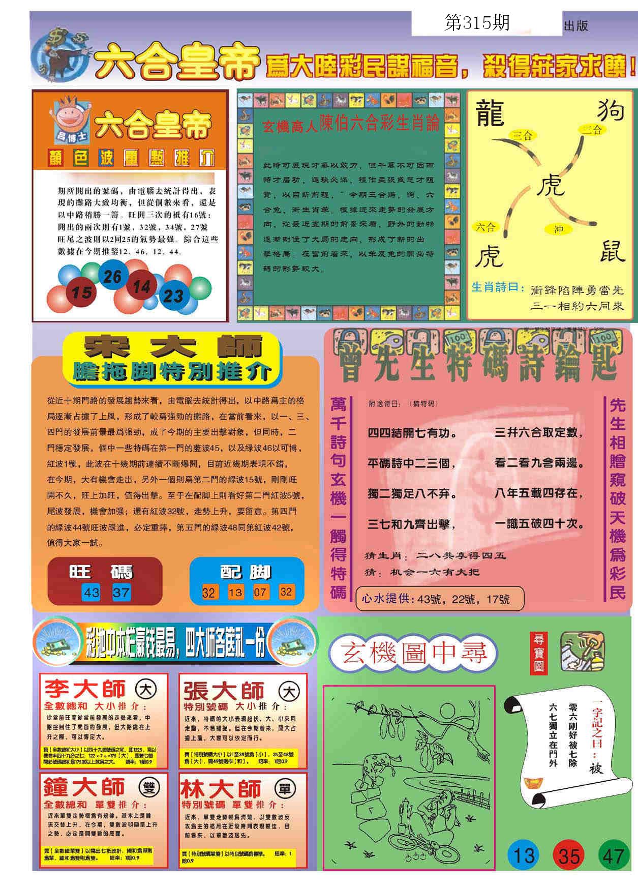 新香港六合彩 第 2025315 期 開獎結果