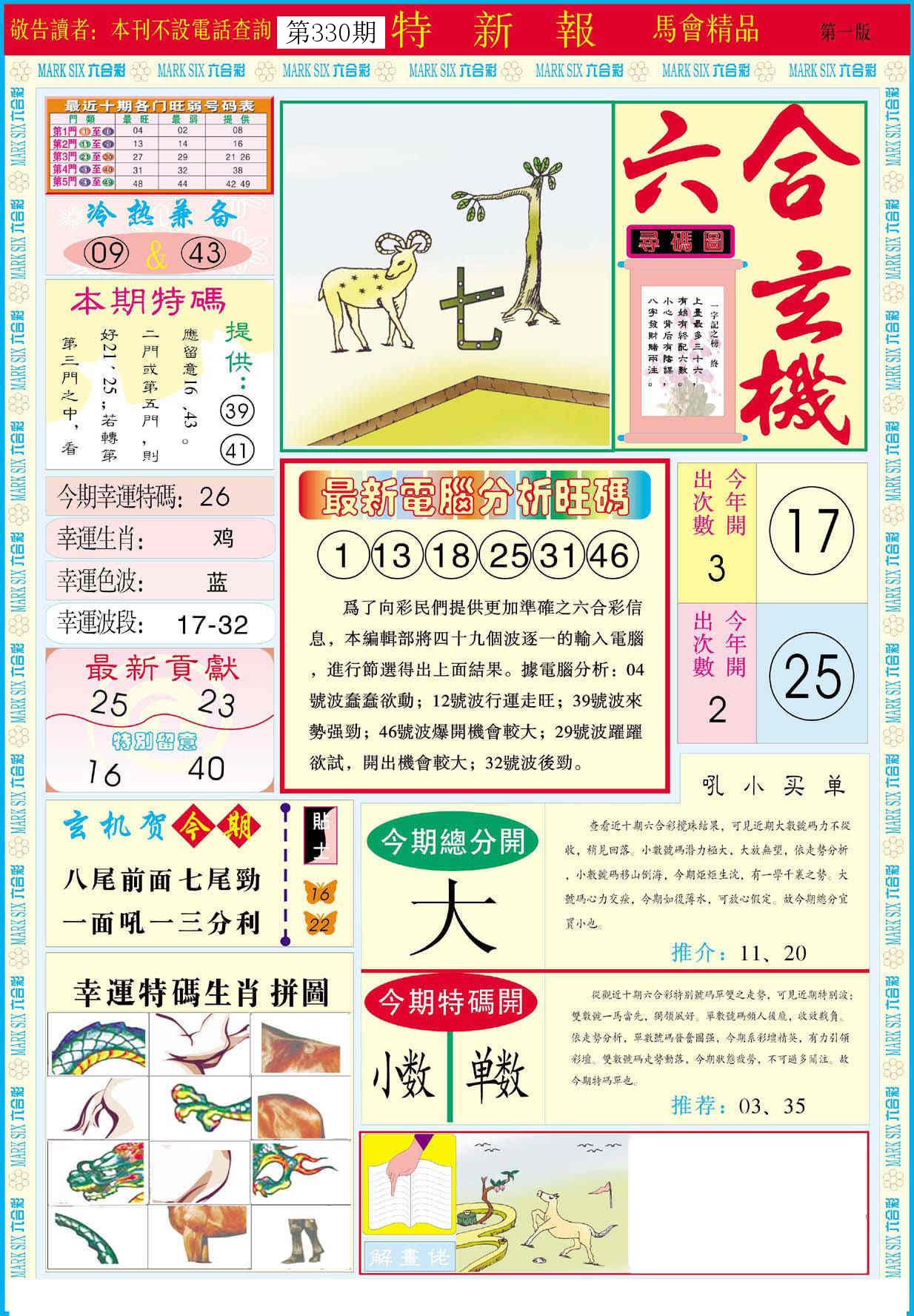 新香港六合彩 第 2025330 期 開獎結果