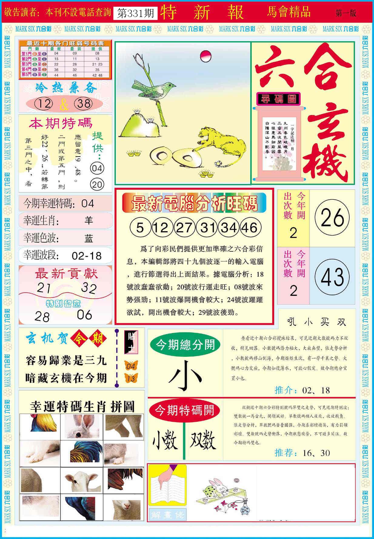 新香港六合彩 第 2025331 期 開獎結果