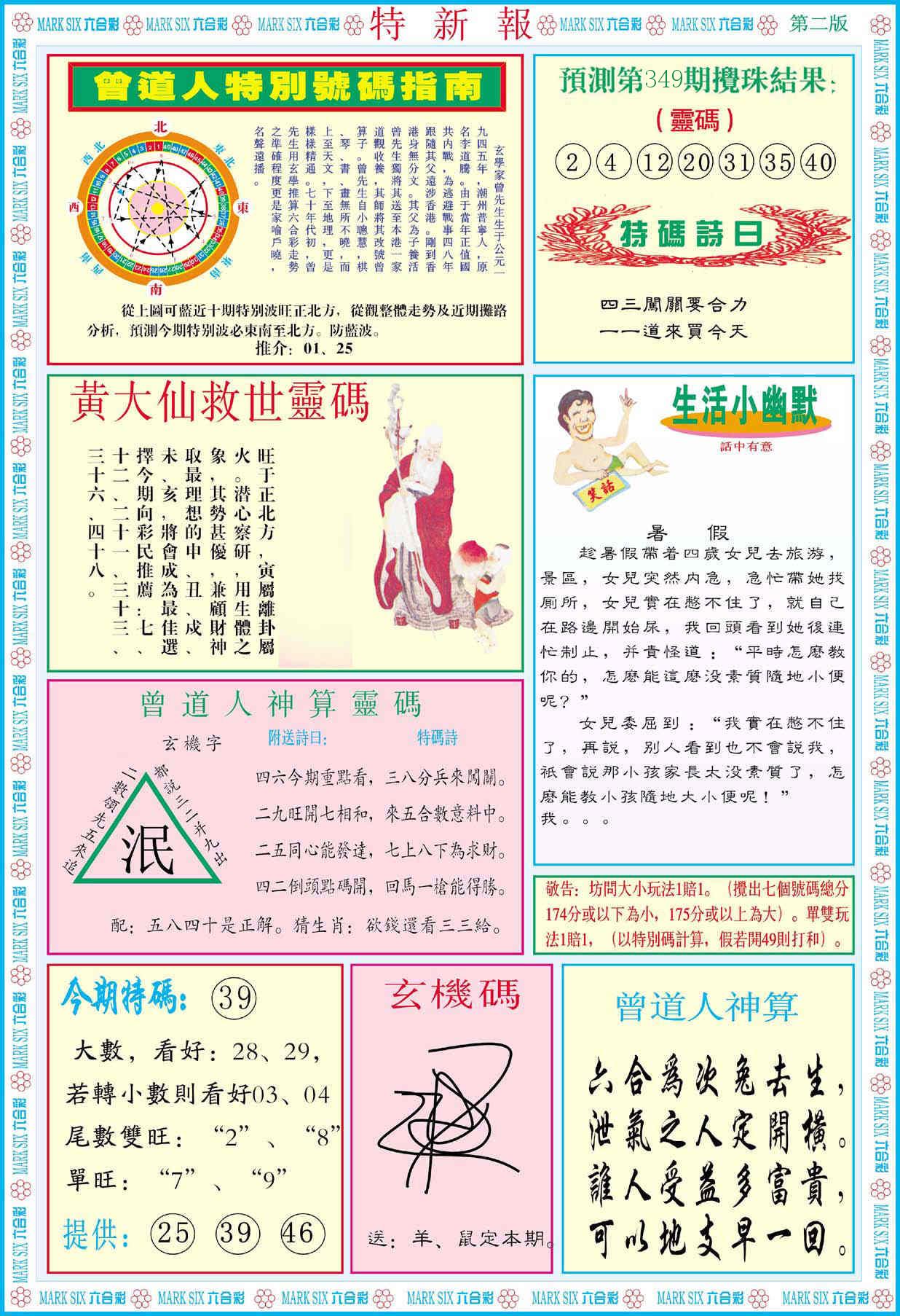 新香港六合彩 第 2025349 期 開獎結果