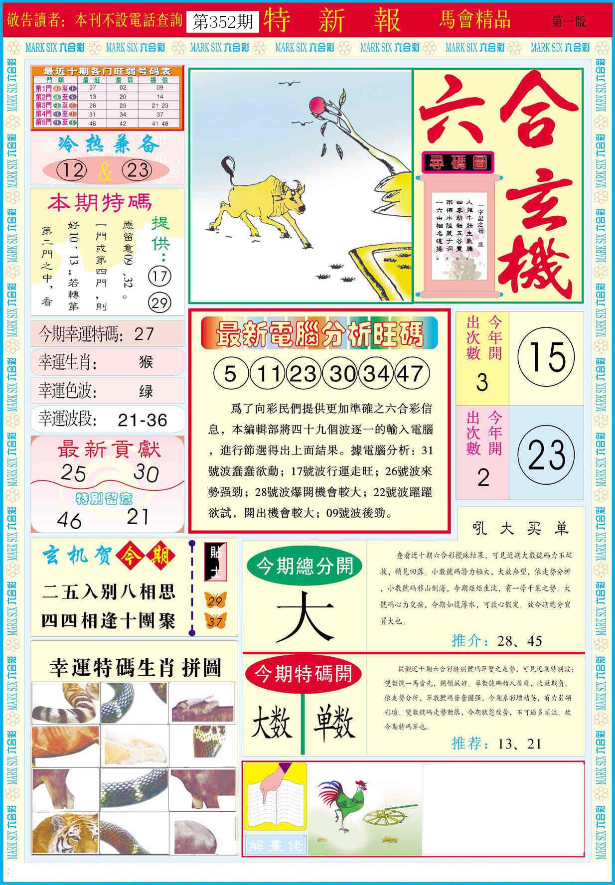 新香港六合彩 第 2025352 期 開獎結果