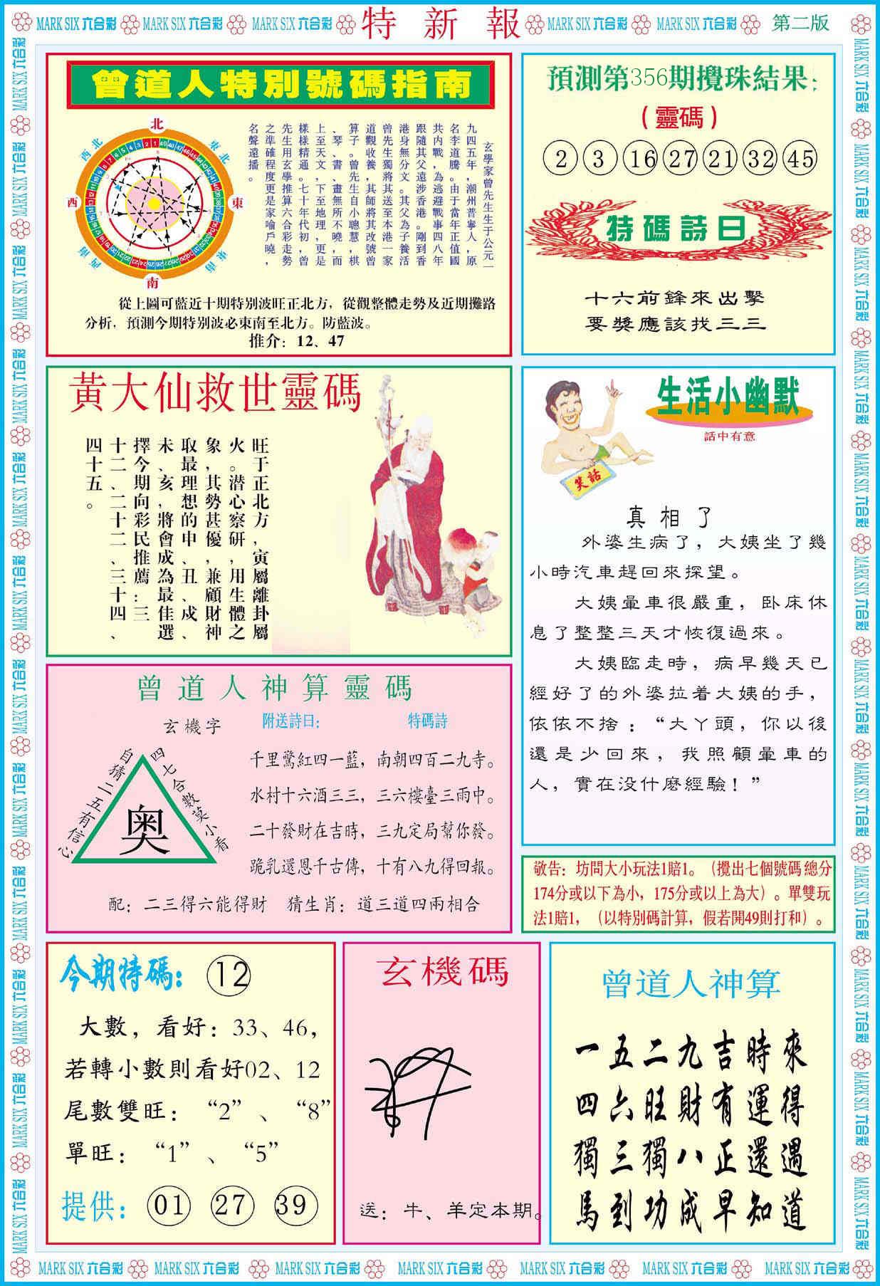 新香港六合彩 第 2025356 期 開獎結果