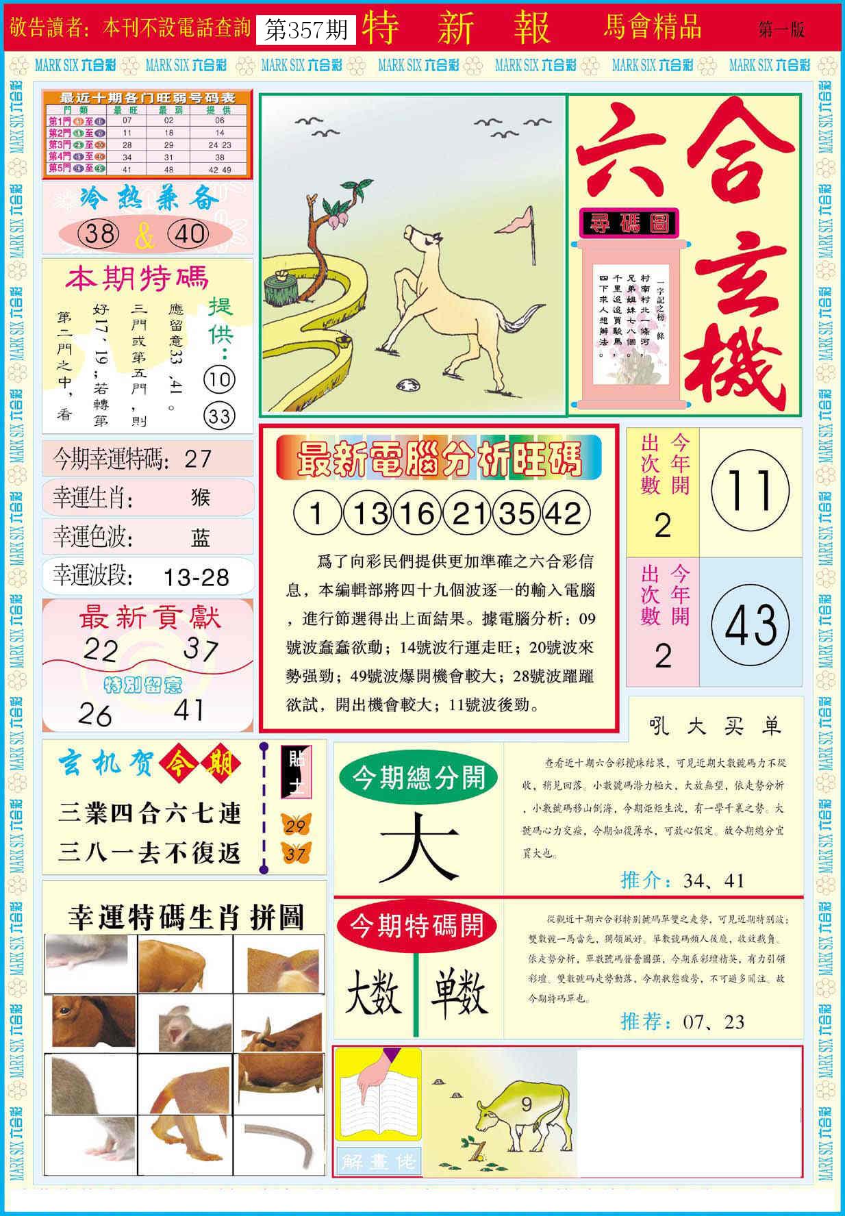 新香港六合彩 第 2025357 期 開獎結果