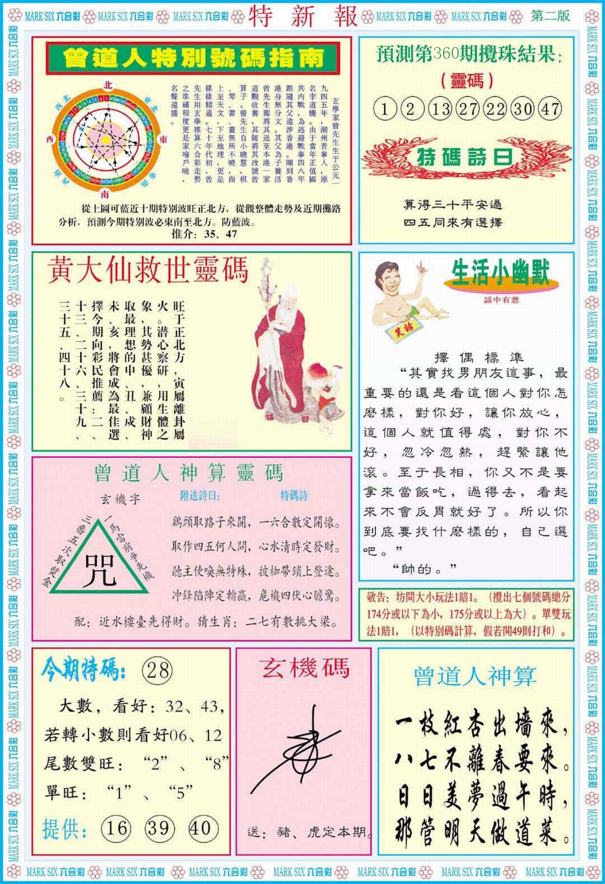 新香港六合彩 第 2025360 期 開獎結果