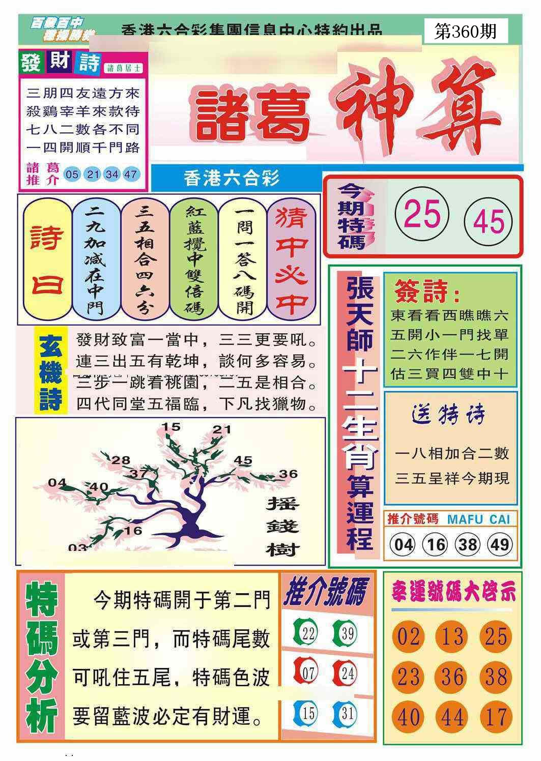新香港六合彩 第 2025360 期 開獎結果