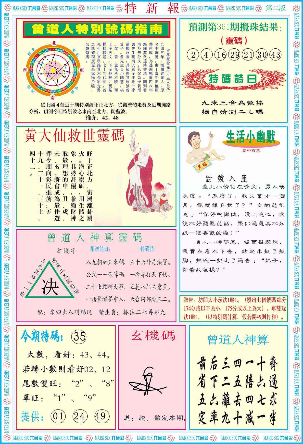 新香港六合彩 第 2025361 期 開獎結果