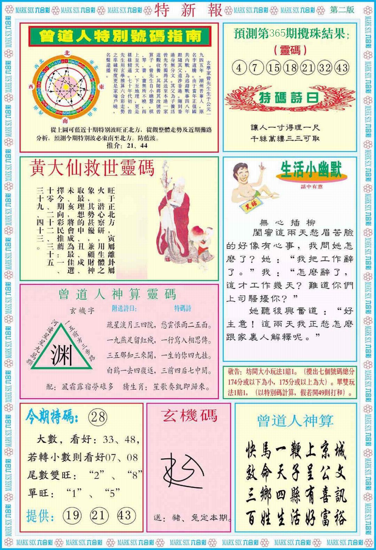 新香港六合彩 第 2025365 期 開獎結果