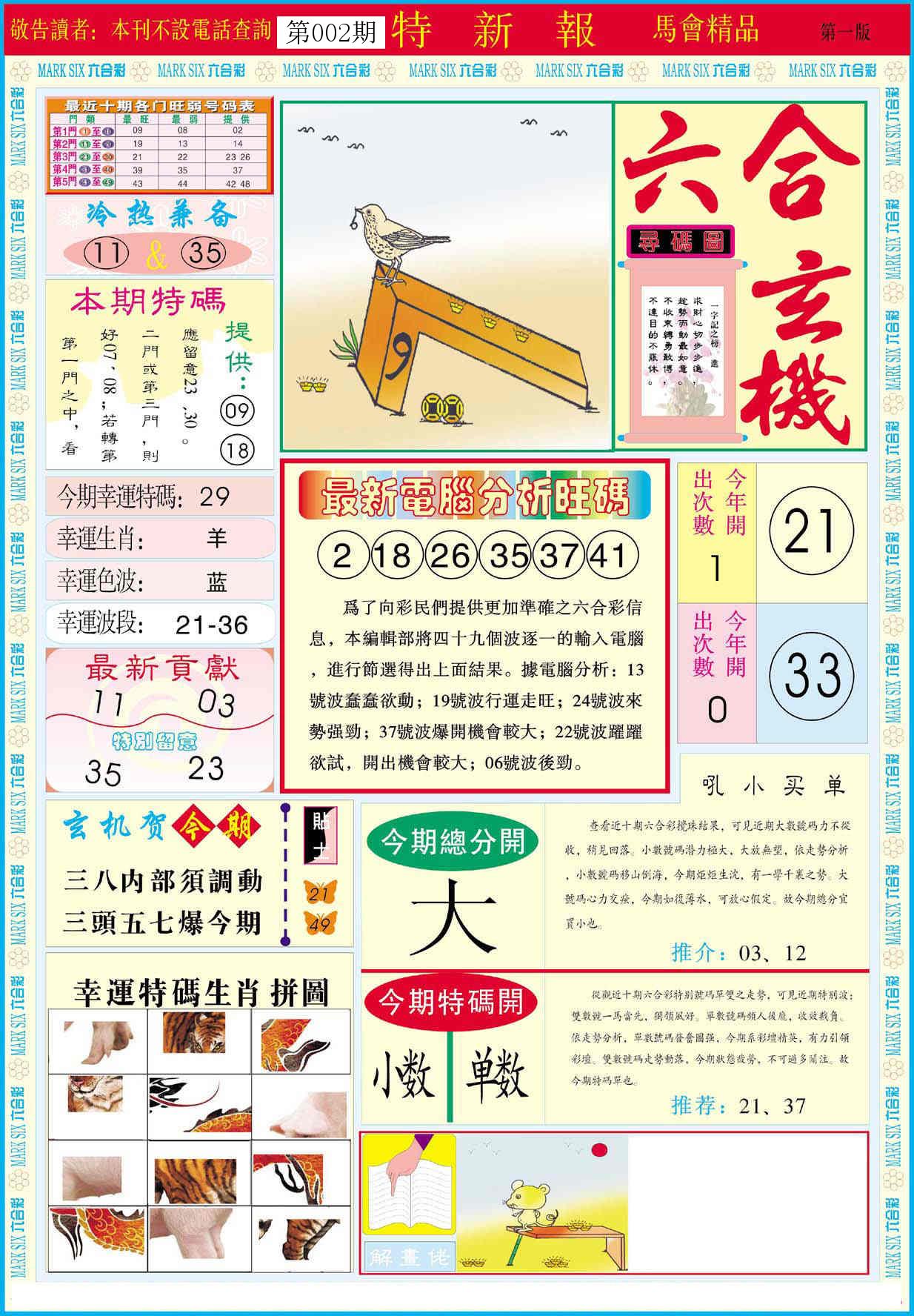 新香港六合彩 第 2026002 期 開獎結果