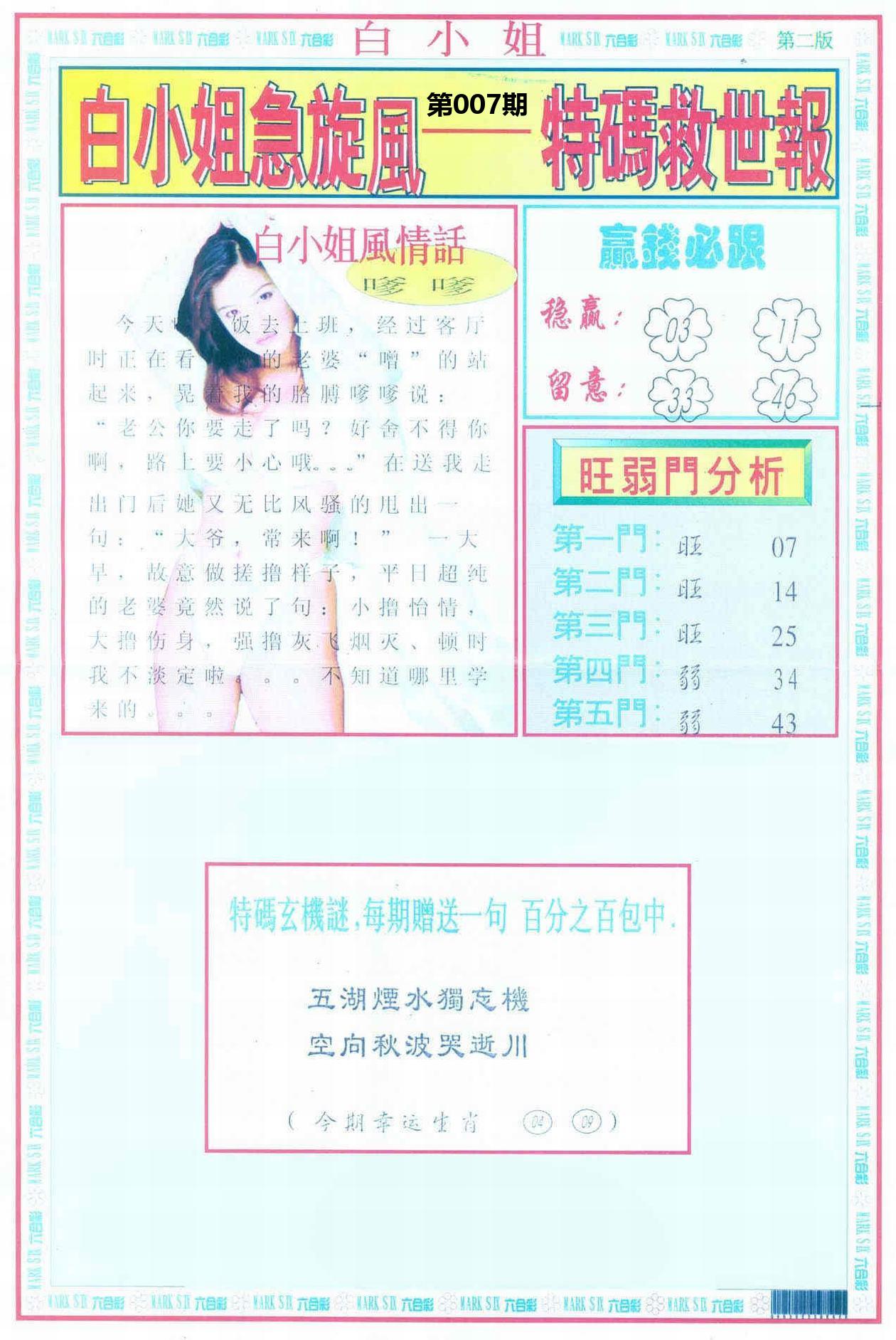 新香港六合彩 第 2026007 期 開獎結果