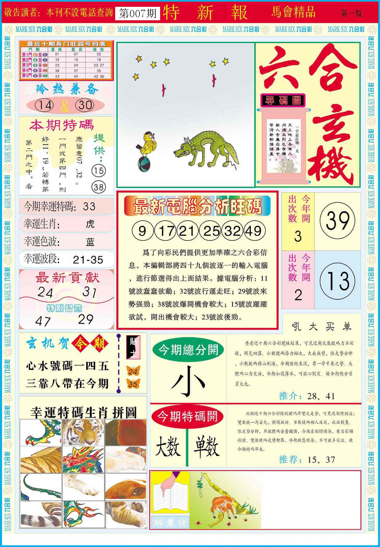 新香港六合彩 第 2026007 期 開獎結果
