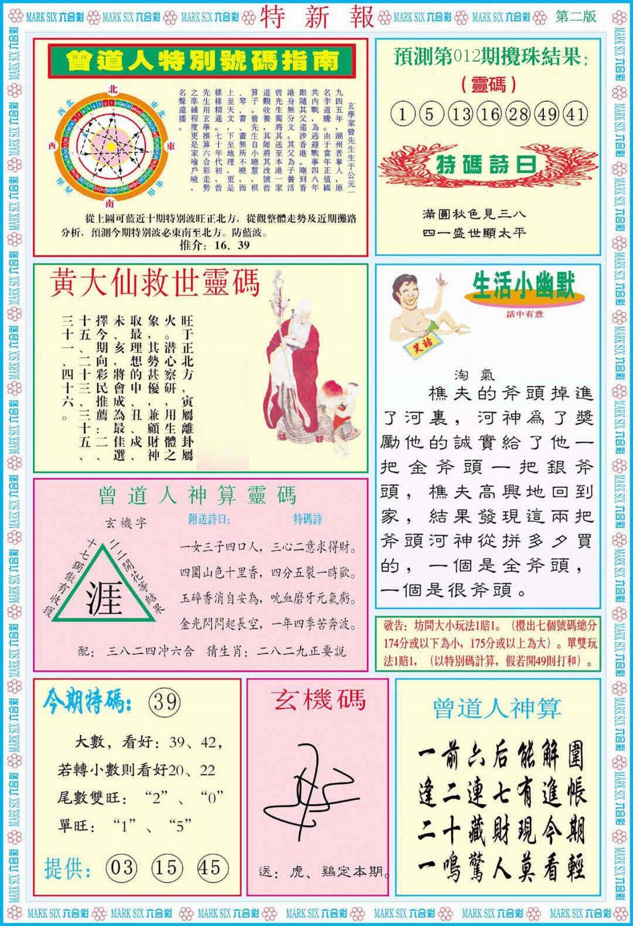 新香港六合彩 第 2026012 期 開獎結果