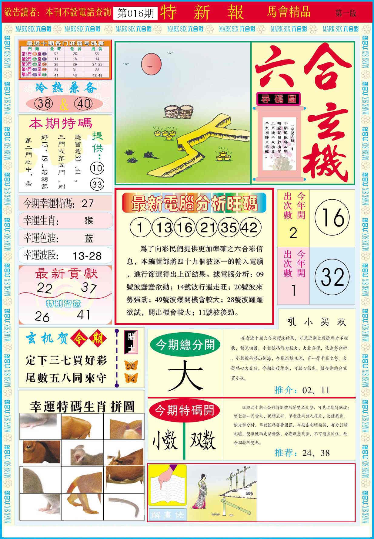 新香港六合彩 第 2026016 期 開獎結果