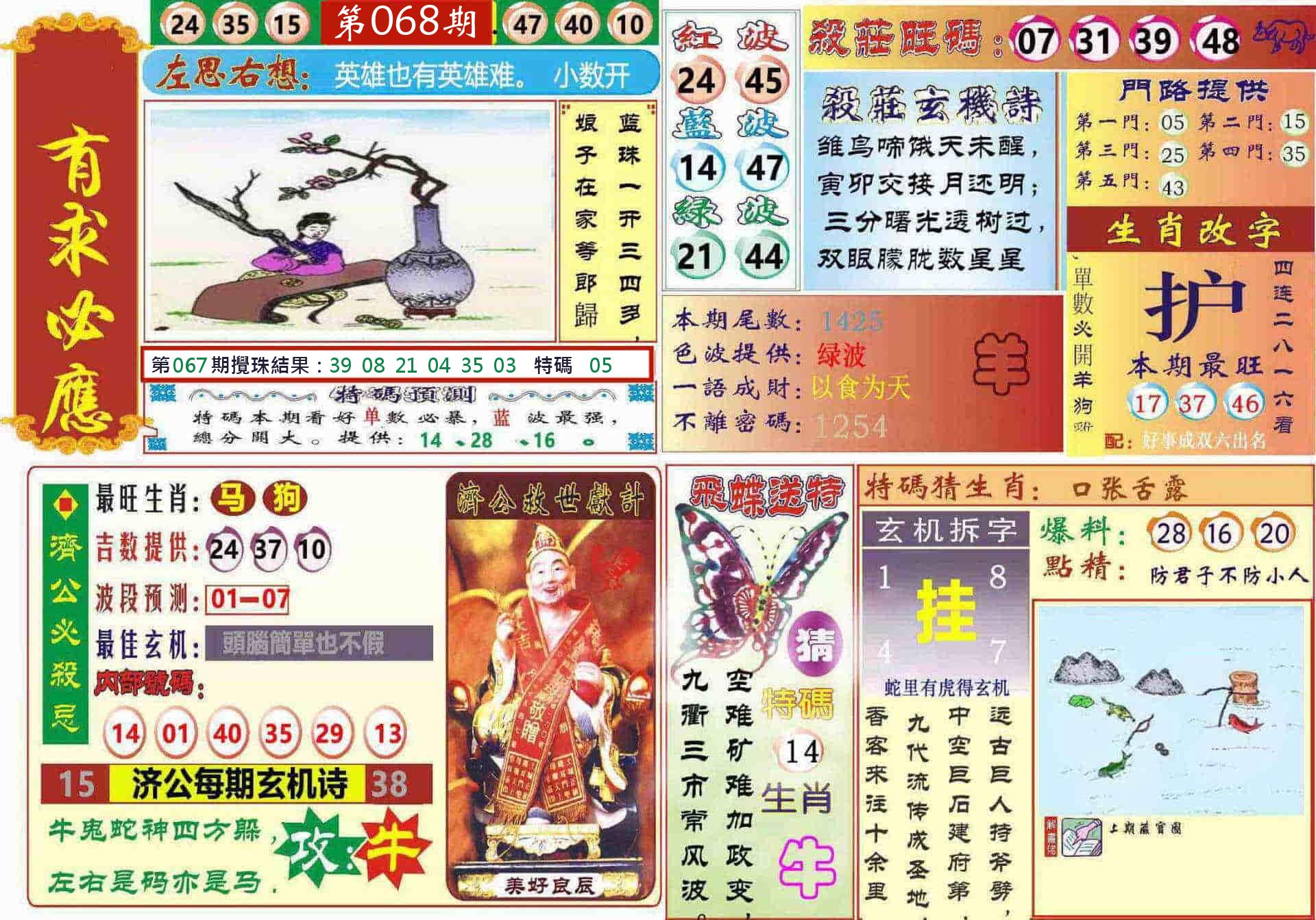 新香港六合彩 第 2026068 期 開獎結果