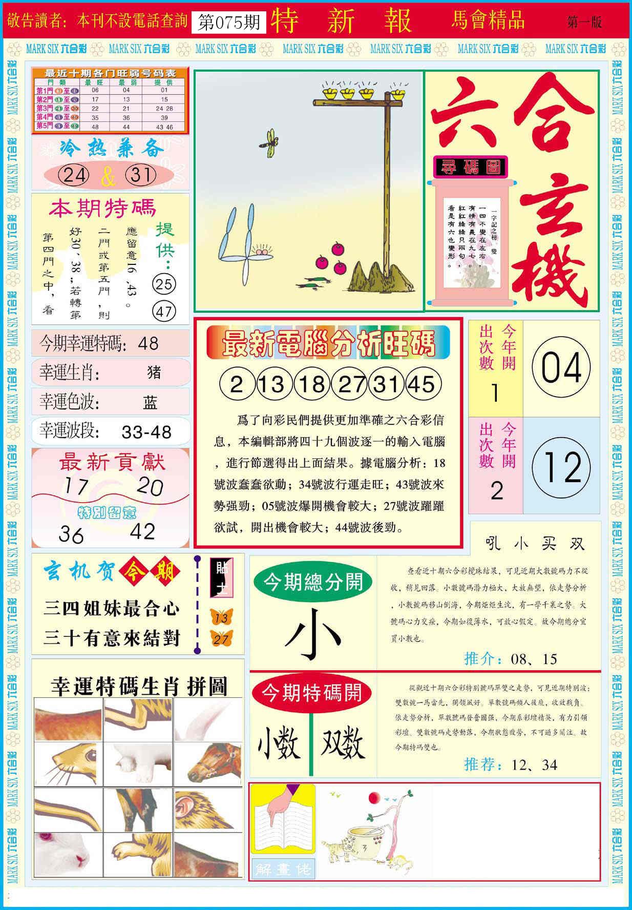 新香港六合彩 第 2026075 期 開獎結果